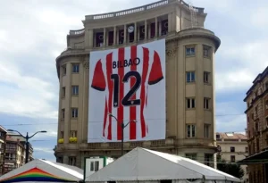 Impresión en textil microperforado de 12×10 metros, seccionada en paños de 3×12 metros. Confeccionada para unión entre ellas, refuerzo y ojales. Y colocada sobre marco generado con cable acerado para tensar la gráfica.