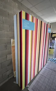 Gráfica impresa en banner confeccionada con silicona perimetral para estructura Pop Up.