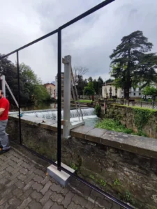 Gráficas impresas en textil blackout confeccionada con silicona perimetral para estructura de hierro.